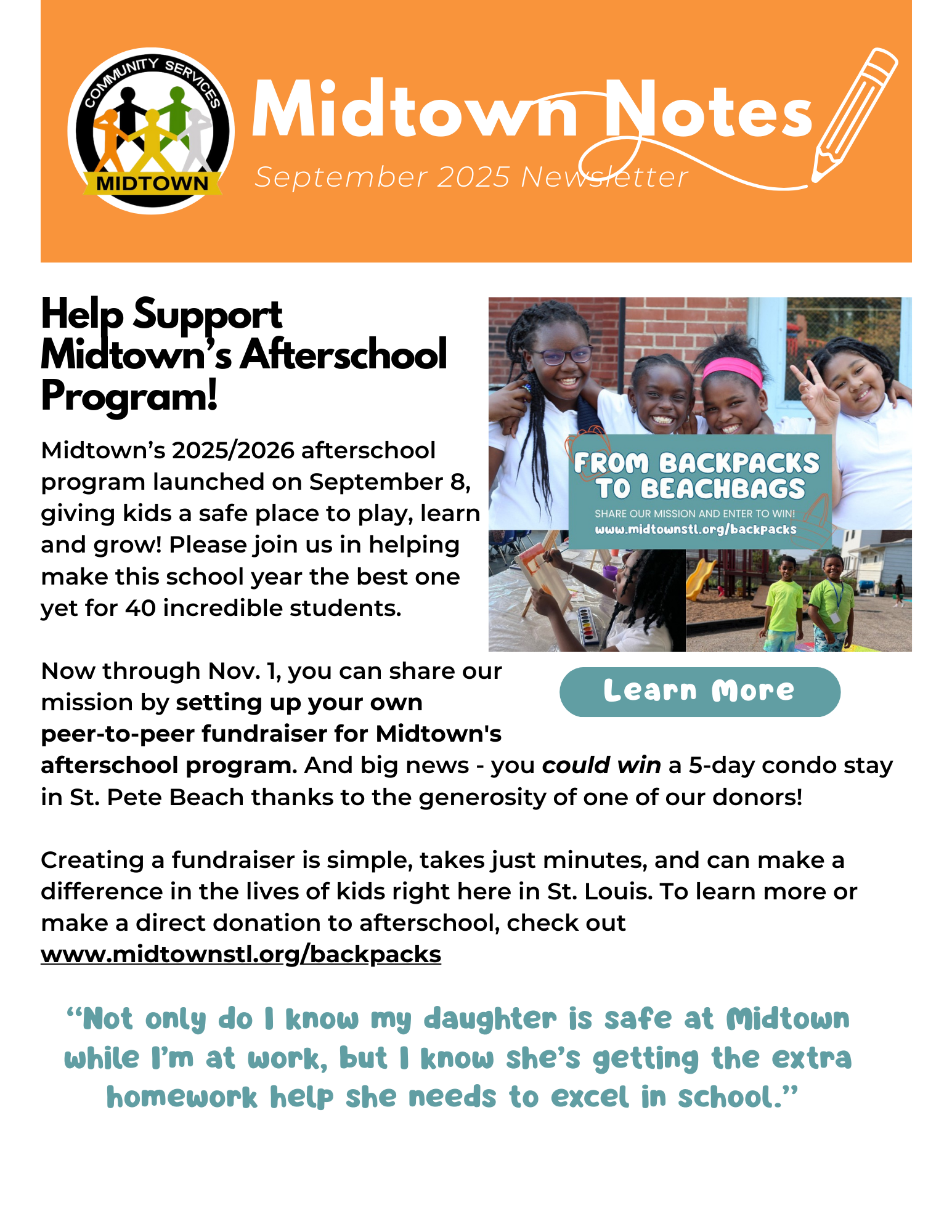 Get all the latest news from Midtown, including our Backbags to Beachbags fundraising campaign, program updates, and registration information for our 2025/2026 afterschool program.